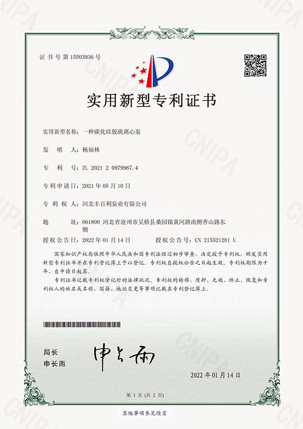 在工業(yè)生產(chǎn)的過(guò)程中,會(huì)產(chǎn)生大量的含硫廢氣,一旦排入空氣中,就會(huì)對(duì)環(huán)境造成惡劣的影響。現(xiàn)有技術(shù)中的脫硫方法為:在脫硫塔上配套使用脫硫泵,通過(guò)脫硫泵向脫硫塔內(nèi)輸送堿性液體,對(duì)脫硫塔內(nèi)的廢氣進(jìn)行循環(huán)噴淋,從而達(dá)到脫除煙氣中二氧化硫的目的。這種脫硫方法廣泛用于冶煉行業(yè)、環(huán)保行業(yè)等。